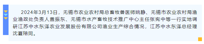 2024年3月要闻回顾 | 无锡市农业农村局一行调研江苏中水东泽渔业生产综合情况