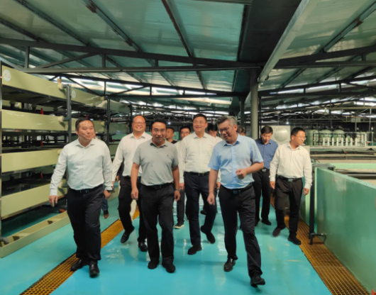 江苏中水东泽总经理沈夏向马良详细介绍企业发展现状、苗种育种技术以及企业未来发展规划。马良认真察看中水东泽现代化渔业示范基地特种水产苗种孵化、繁育等情况,为企业良好的发展态势点赞。